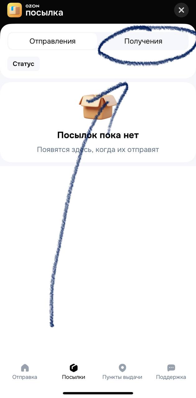 Далее в нижнем меню выбираем "Посылки".